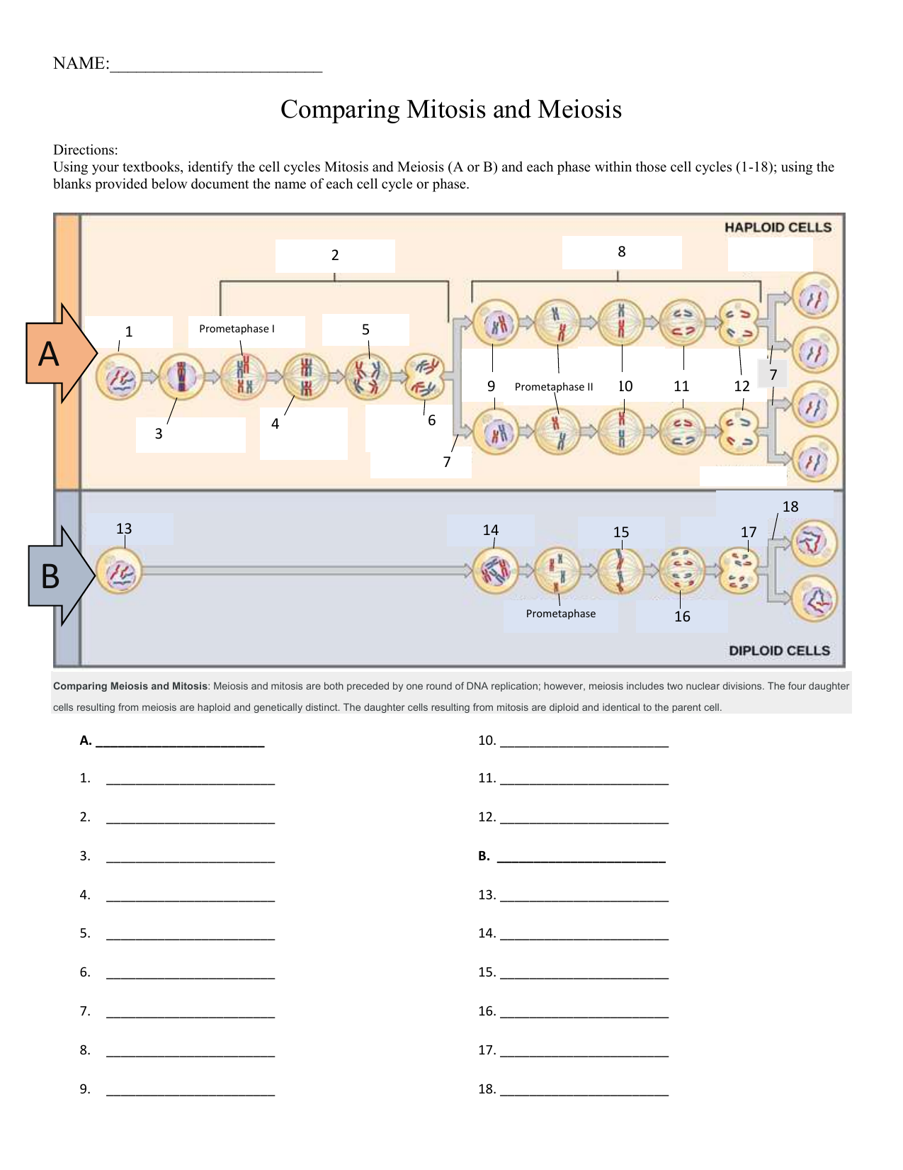 One common type of question on a mitosis and meiosis worksheet might ask students to identify the stages of each process based on a given diagram. Students would need to be able to recognize characteristics such as the appearance of chromosomes and the formation of spindle fibers to correctly identify each stage.