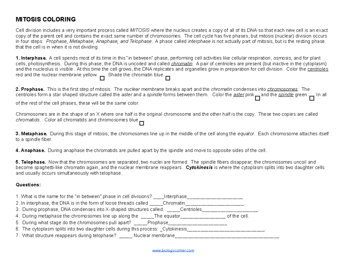 Coloring worksheets are not only fun but also educational tools that promote creativity and enhance learning. By coloring the different stages of mitosis, students can actively engage with the material and reinforce their understanding of the concepts involved. It is a hands-on approach that caters to various learning styles and makes complex topics more accessible.