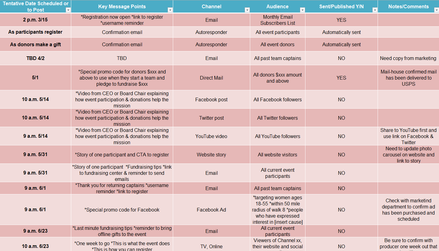 2. Target Audiences: Identify the key stakeholders and target audiences that the organization needs to reach. This may include donors, volunteers, community members, media outlets, and other organizations. Tailor messaging and communication channels to effectively reach and engage with each audience group.
