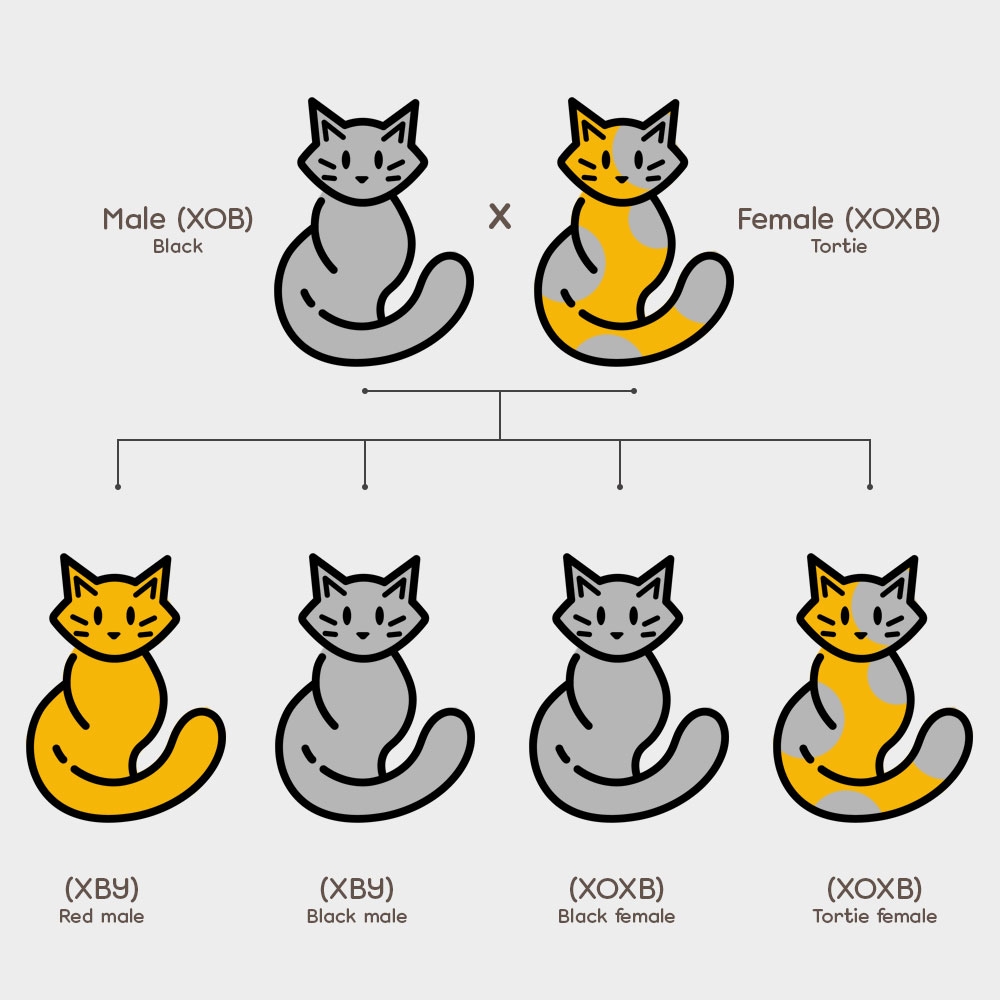 For example, if a black cat and an orange cat mate, their kittens may be black, orange, or a combination of the two colors. This is because coat color in cats is determined by several different genes, each of which can contribute to the final appearance of the offspring.