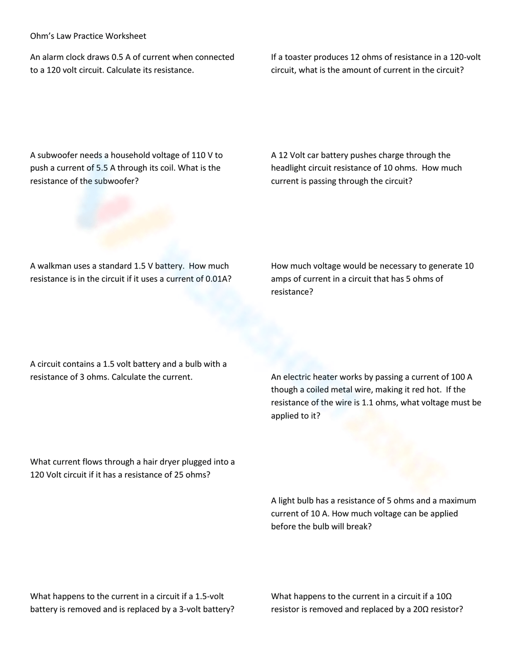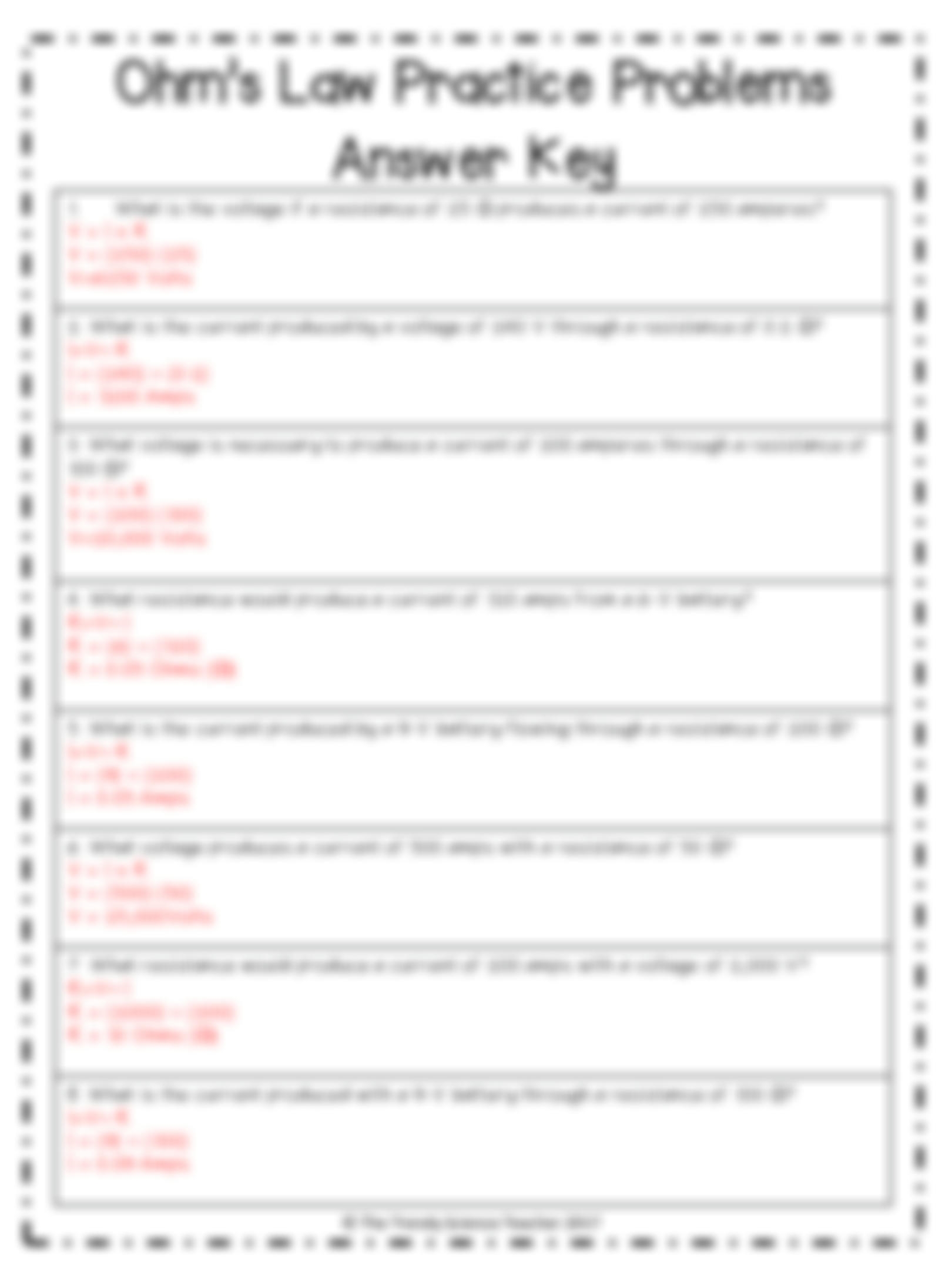 Let’s take a look at some example problems that you might encounter in an Ohm’s Law practice worksheet: