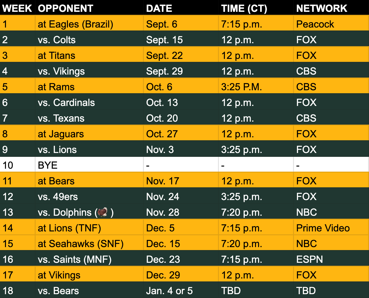 Download Your Green Bay Packers Schedule Printable