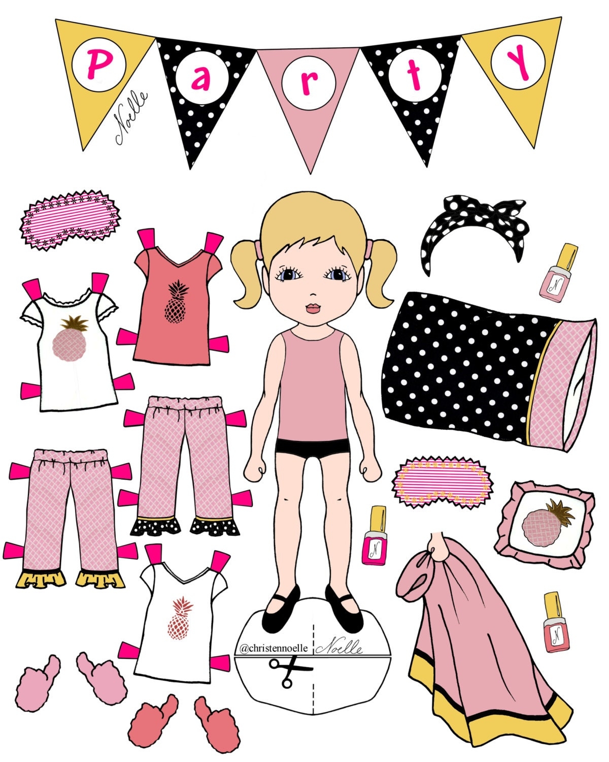 Slumber Party Paper doll Set Blonde With Pigtails Printable