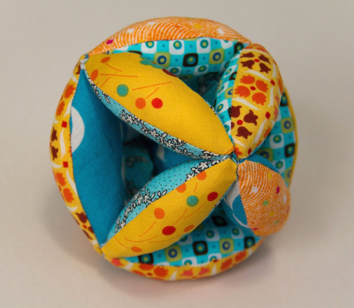 Start by selecting a range of colorful fabrics that complement each other. Cut out the template pieces from sturdy cardstock and use them as guides to cut out the fabric shapes. Sew the pieces together, leaving a small opening to insert stuffing. Once the ball is stuffed and the opening is closed, your patchwork puzzle ball is complete!