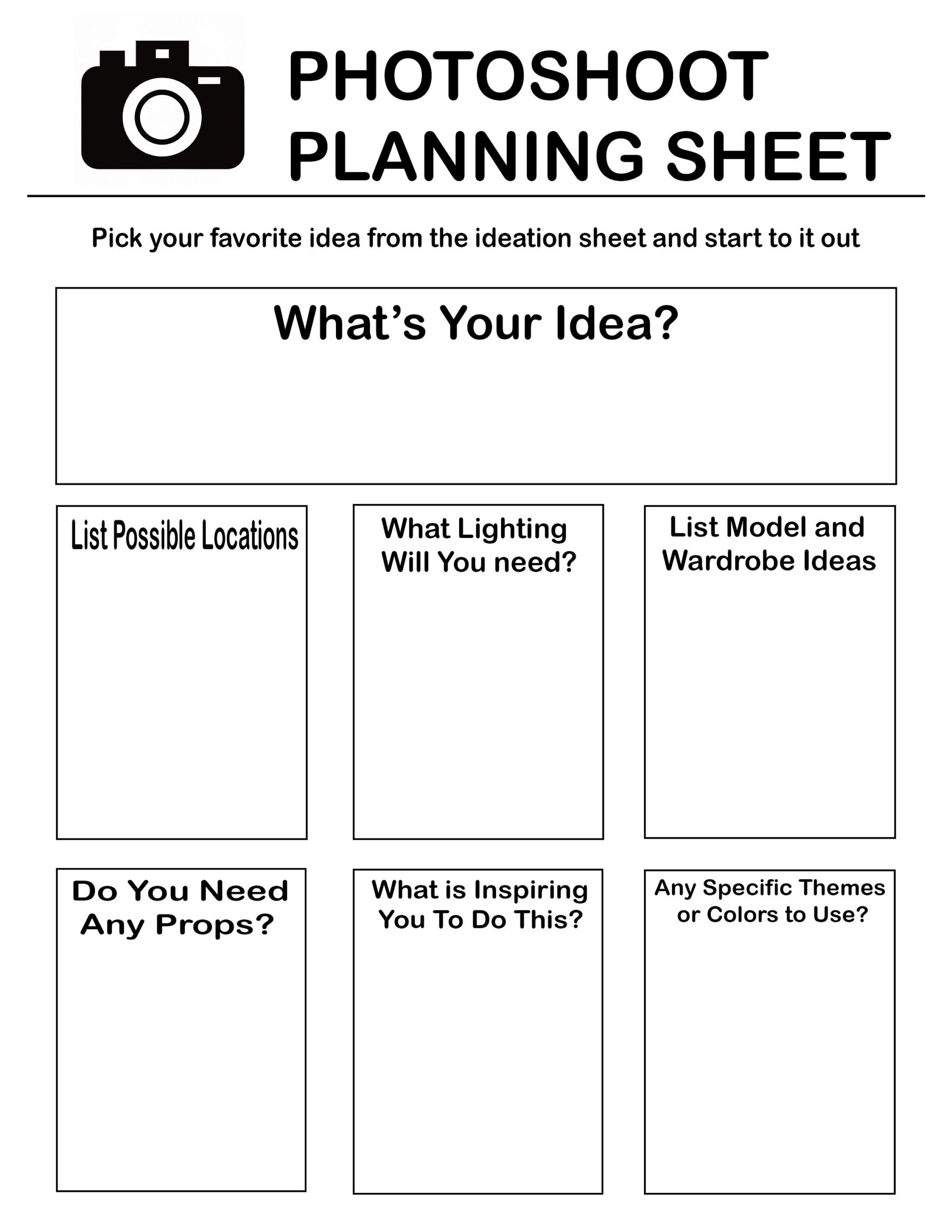 Download and Print photoshoot planning template Listed below