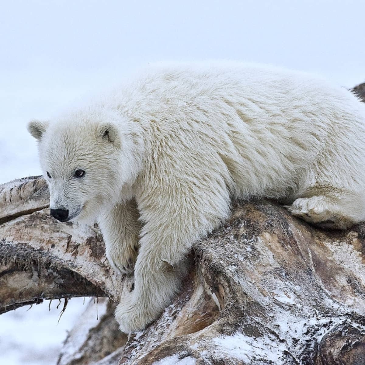 Although polar bears appear white, their fur is actually made up of clear, hollow tubes. These tubes reflect light, giving the appearance of white. The transparent fur also helps trap heat from the sun, providing insulation for the bear in the cold Arctic environment. The black skin underneath the fur helps absorb heat, keeping the polar bear warm.