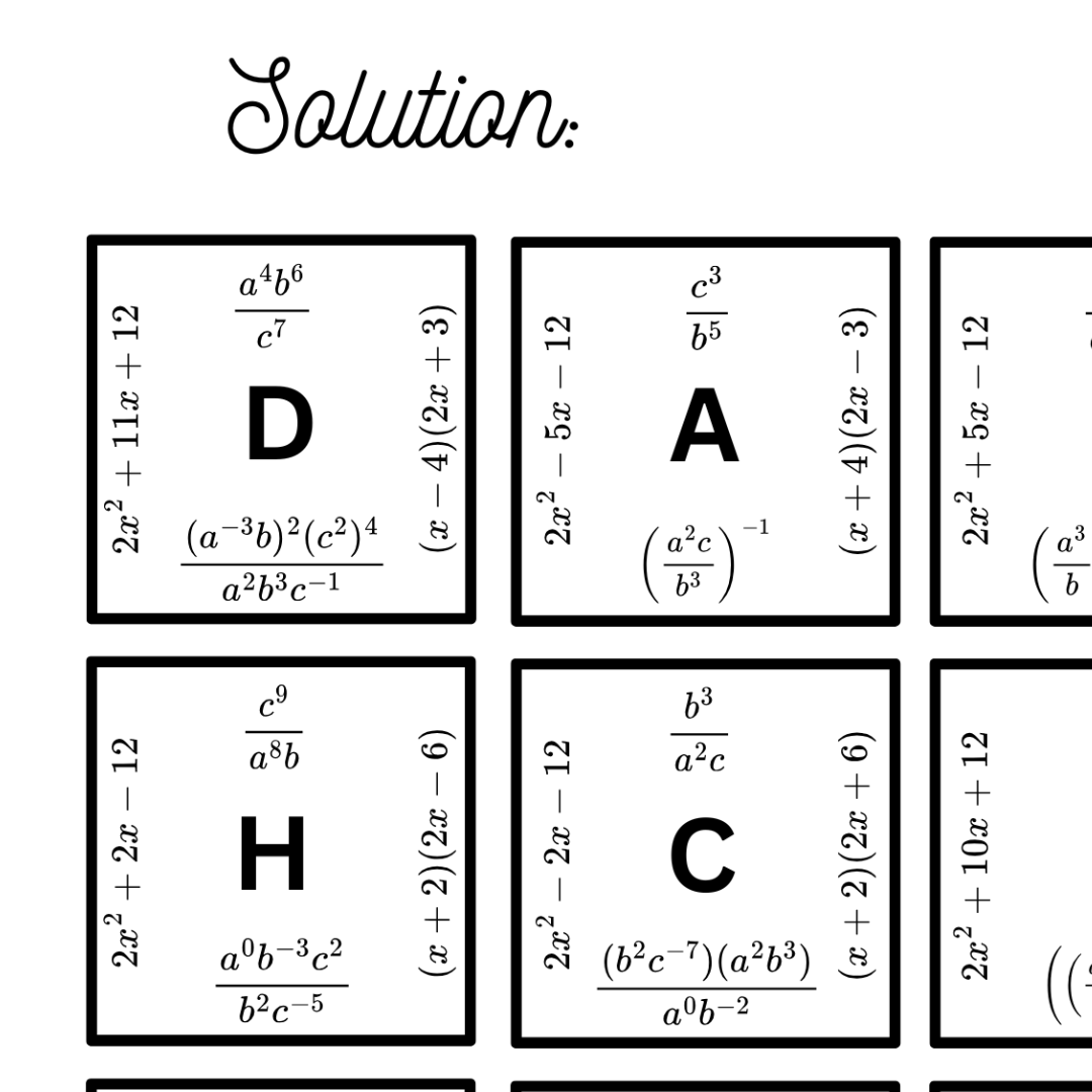 Start by deciding on the polynomial expressions you want to include in your puzzle. You can choose a range of simple linear expressions, quadratic expressions, or even higher-degree polynomials for more advanced students. Make sure to create pairs of matching expressions that will fit together correctly.