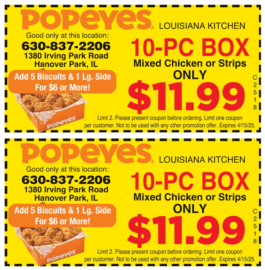 With Popeyes printable coupons, you can enjoy discounts on combo meals, family packs, sides, and more. Whether you’re dining in or taking your meal to go, these coupons make it easy to enjoy a delicious meal without breaking the bank.