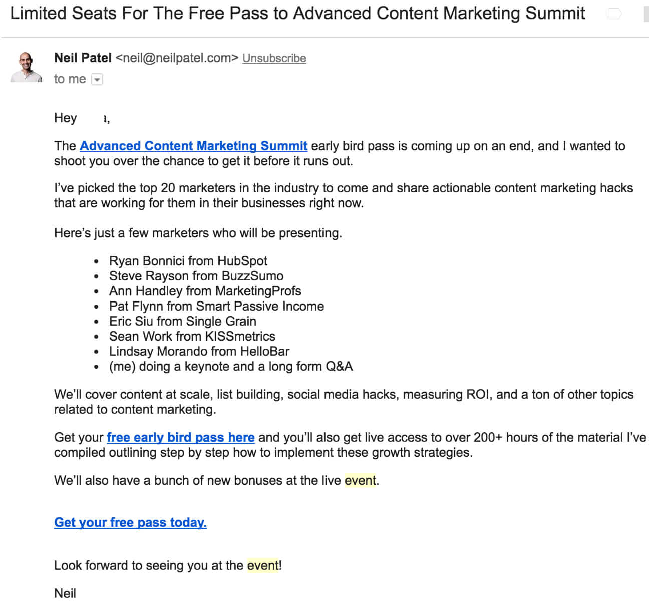 Here is a sample pre-event email template that you can use as a guide: