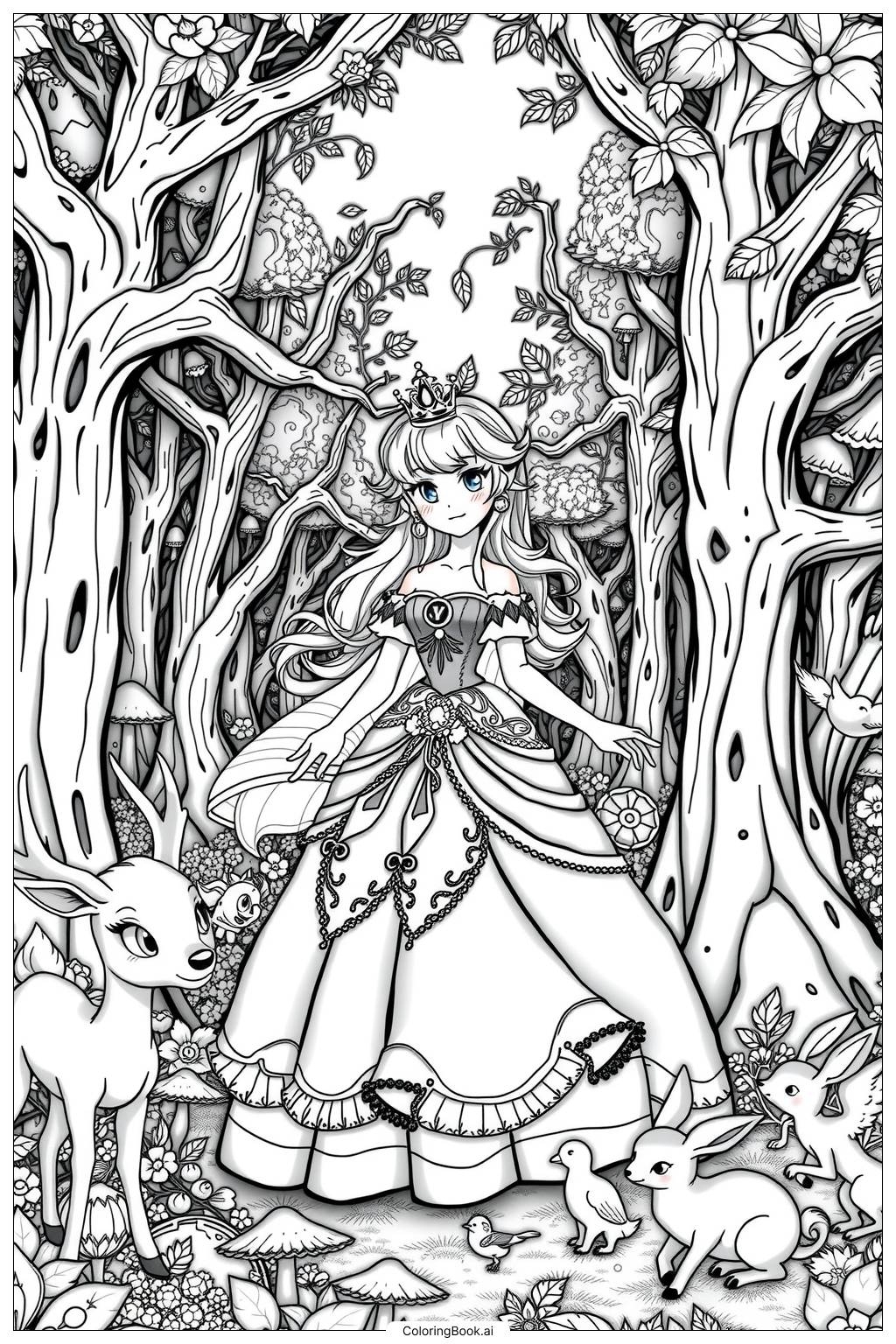 Princess Peach Playing With Woodland Creatures Coloring Page Free PDFu0026PNG Printable