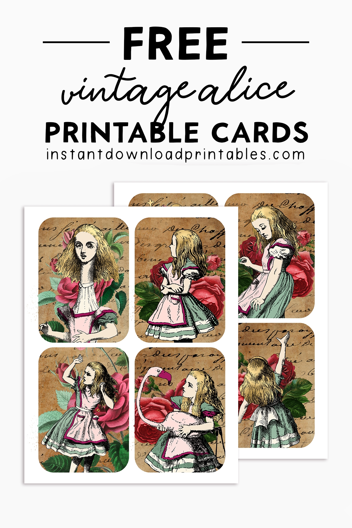 Free Alice In Wonderland Vintage Shabby Rose Cards Instant