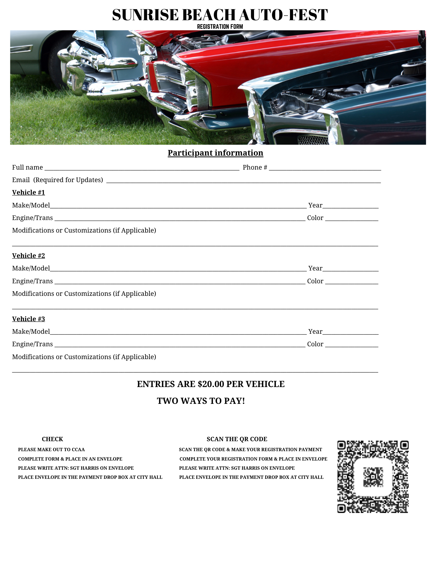 Printable Car Show Registration Form Template