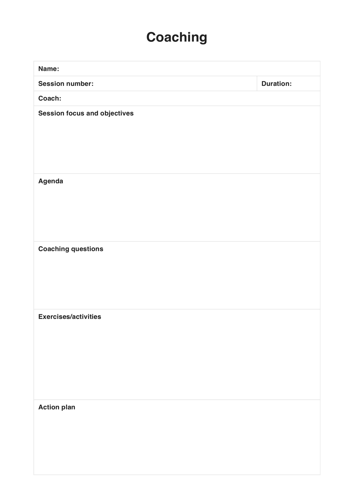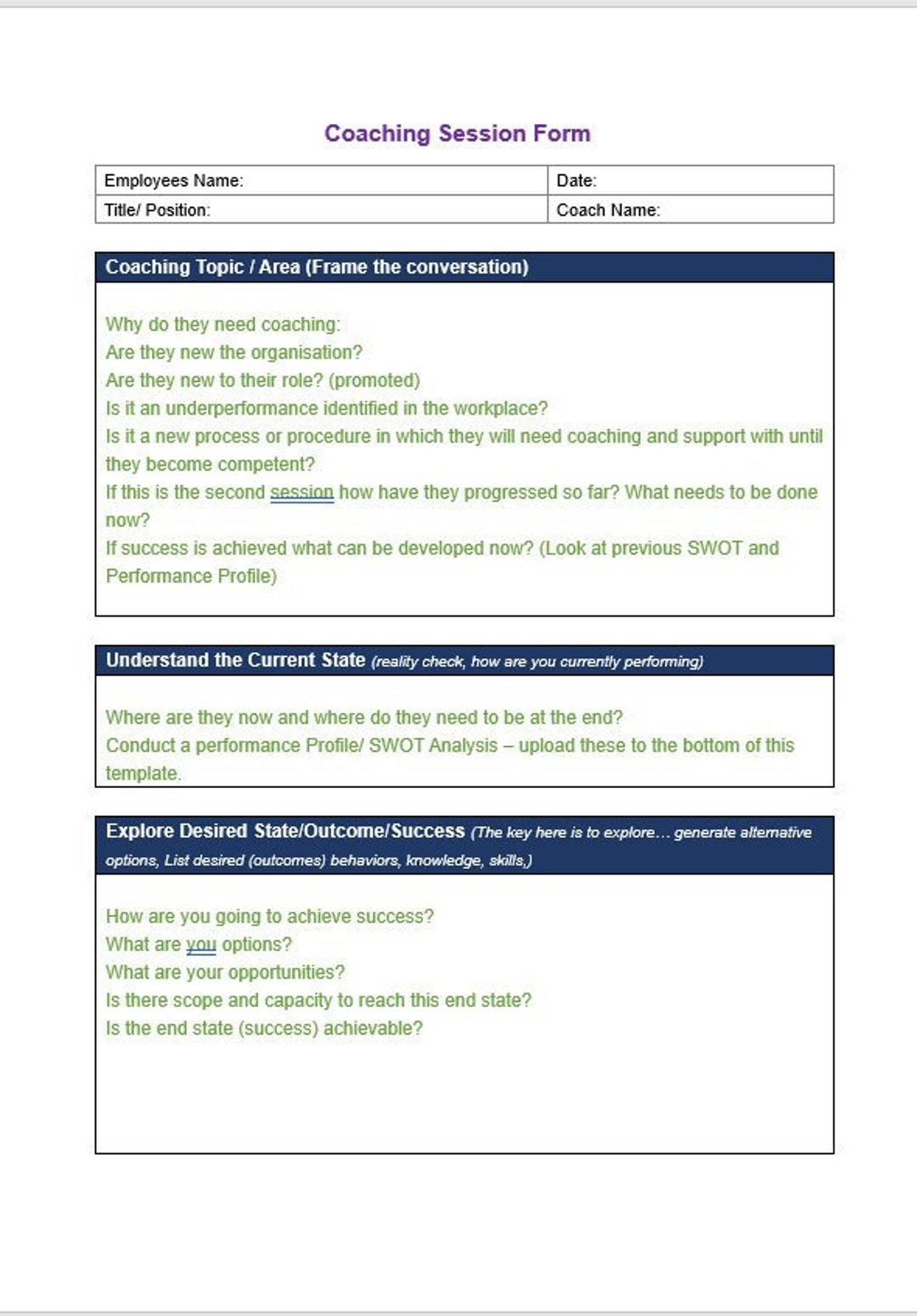 Printable Coaching Form Template