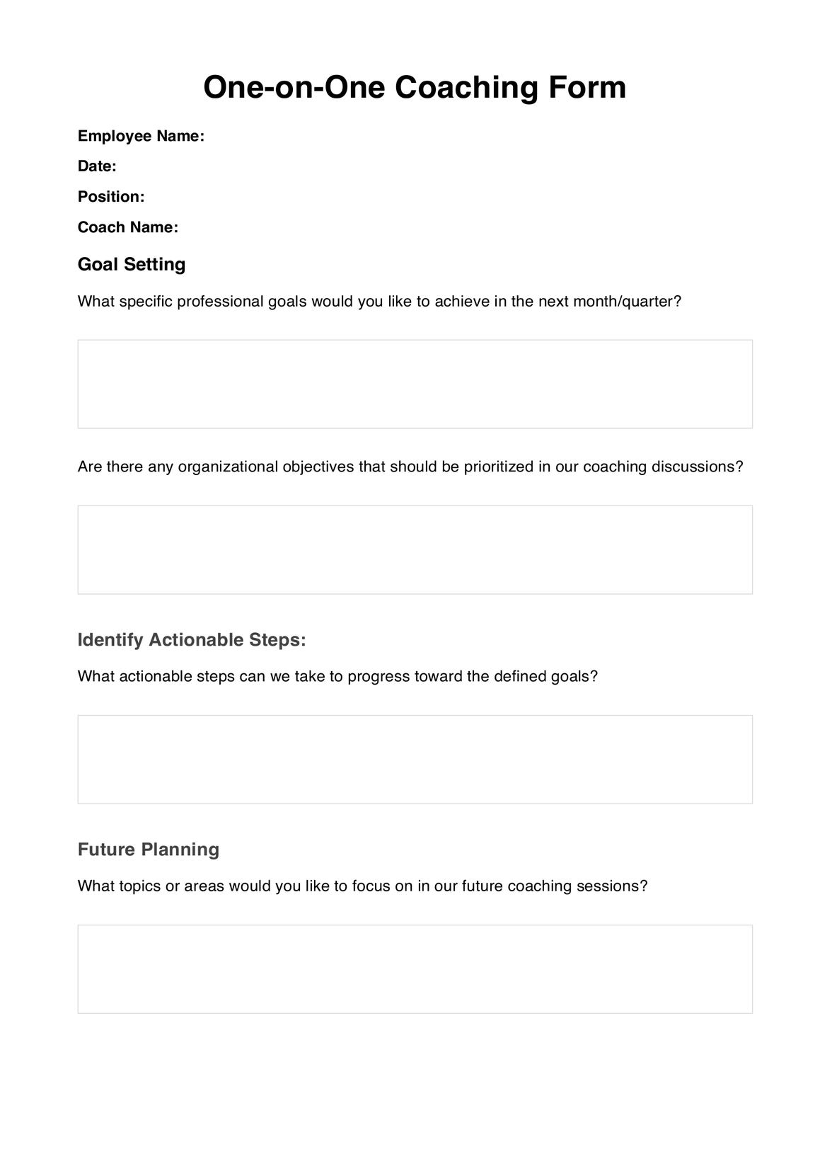 One On One Coaching Form Template U0026 Example Free PDF Download