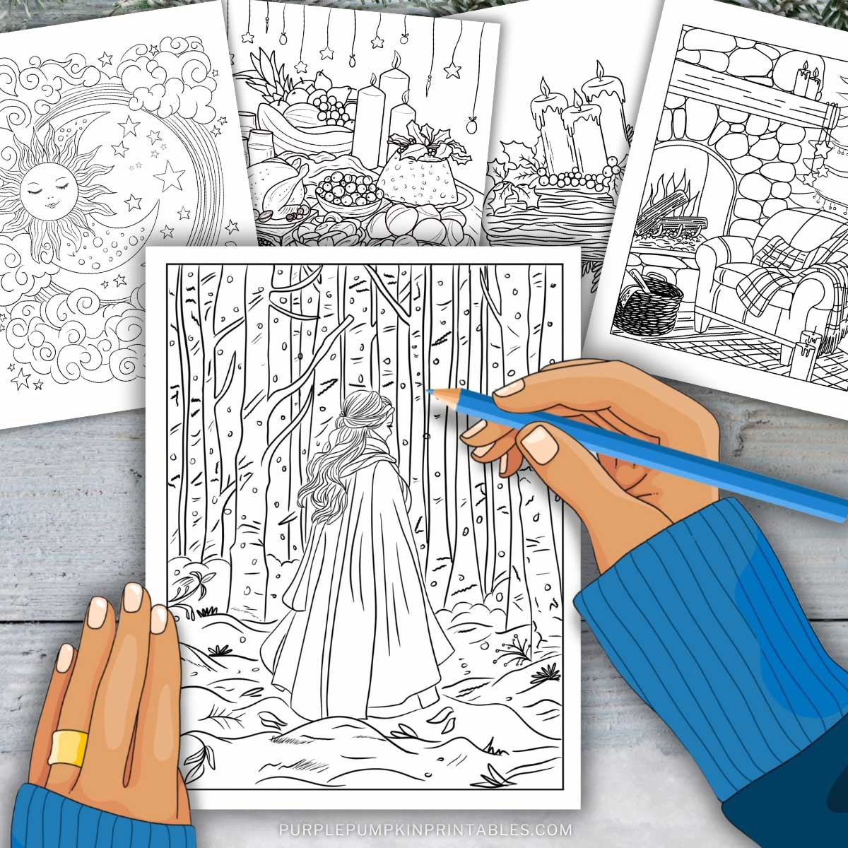 Printable Winter Solstice Coloring Book Bonus Procreate File
