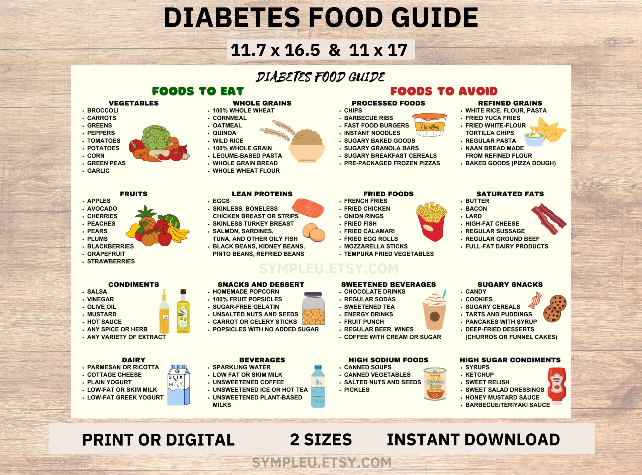 Amazon Diabetes Food List Printable PDF Low GI Diabetic Friendly Foods Meal Planning Grocery Guide For Blood Sugar Control 12x18inch Unframed