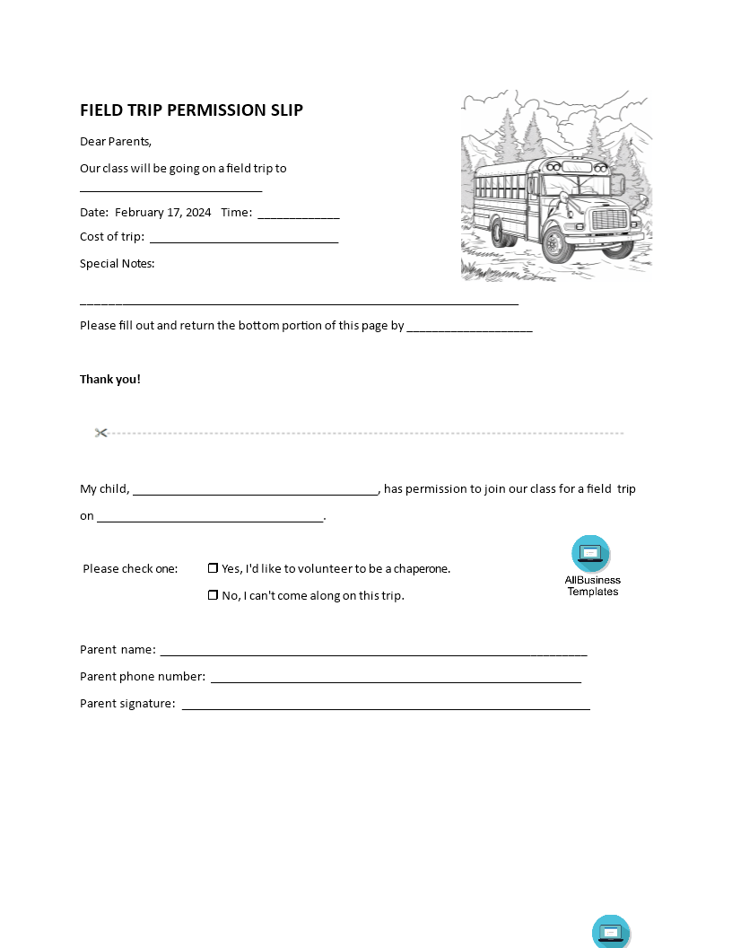 Printable Field Trip Permission Slip Template