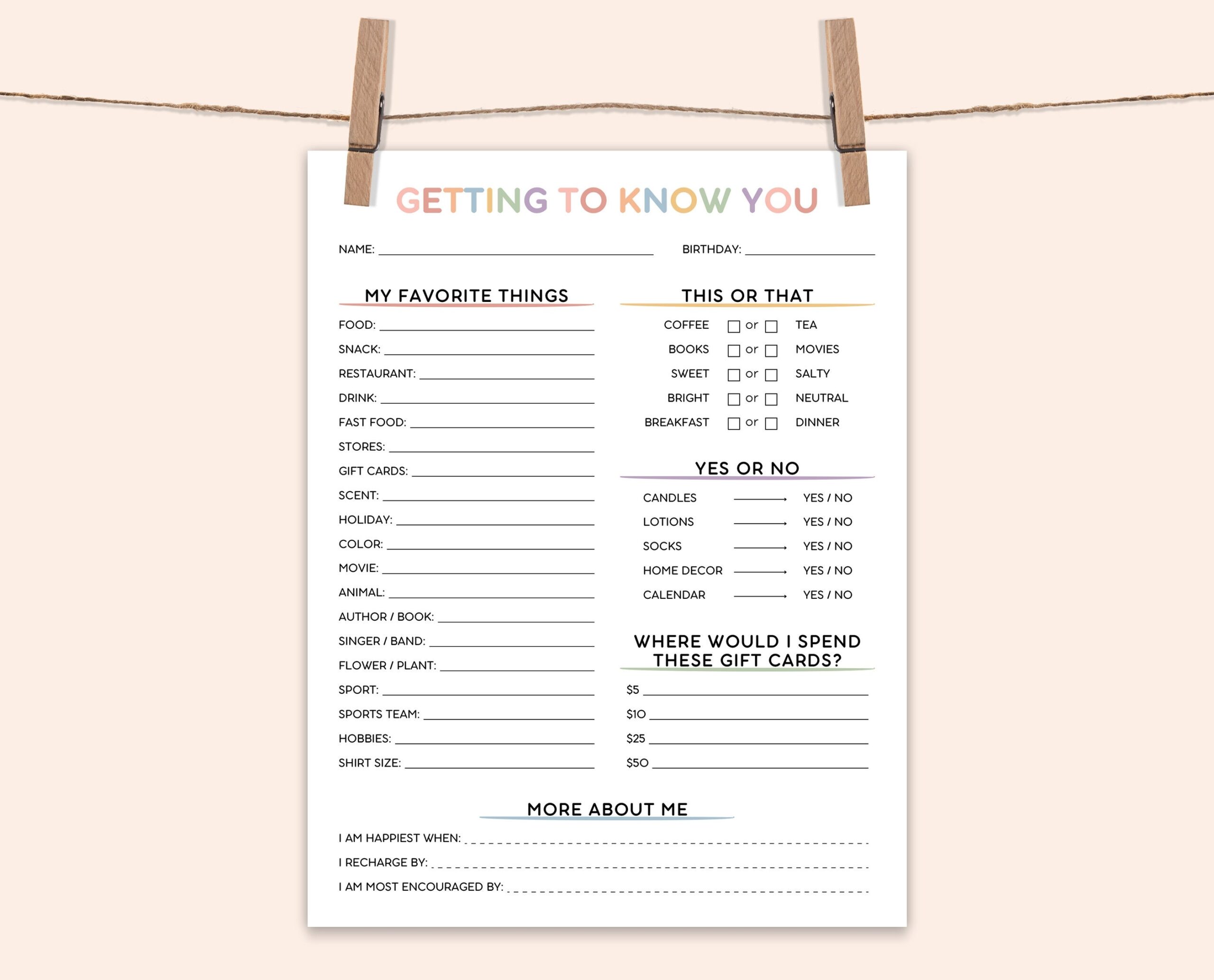 Printable Getting to Know Your Employees Questionnaire Template