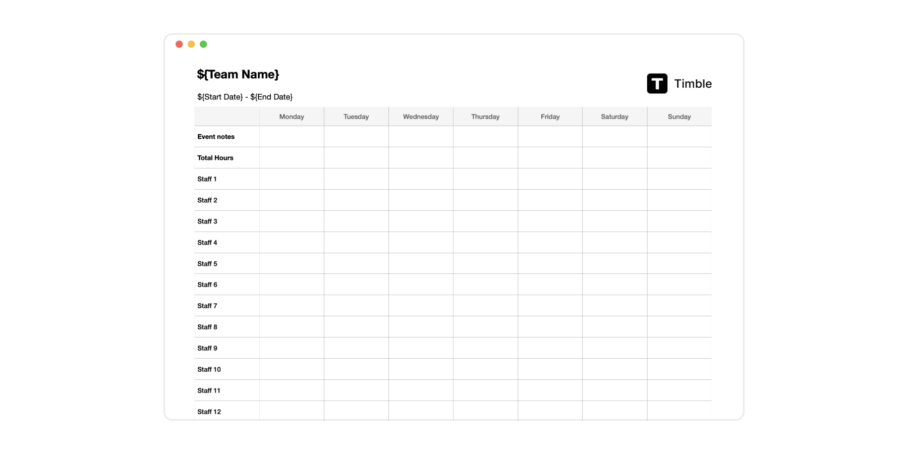 Printable Roster Template