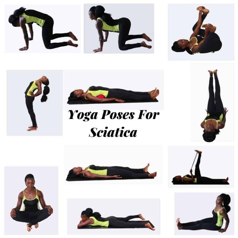 1. Cat-Cow Stretch: Begin on your hands and knees, with your wrists directly under your shoulders and your knees under your hips. Inhale as you arch your back and lift your head towards the ceiling, then exhale as you round your back and tuck your chin towards your chest. Repeat this flow for 10-15 breaths to help improve flexibility in your spine and alleviate sciatica pain.