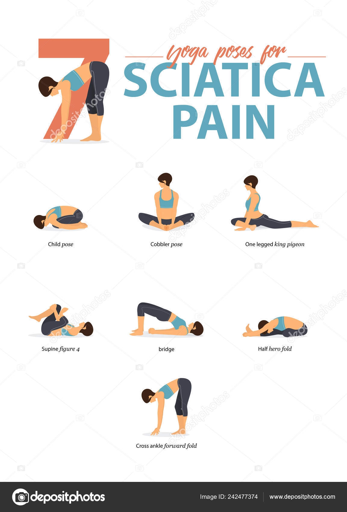 5. Child’s Pose: Begin on your hands and knees, then sit back on your heels with your arms extended in front of you. Hold this pose for 30 seconds to stretch your lower back and hips, which can help alleviate sciatica pain and improve flexibility in the spine.
