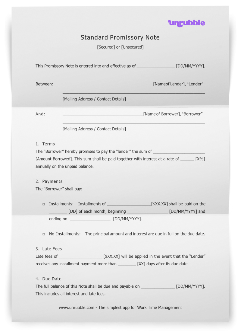 Printable Simple Promissory Note Template
