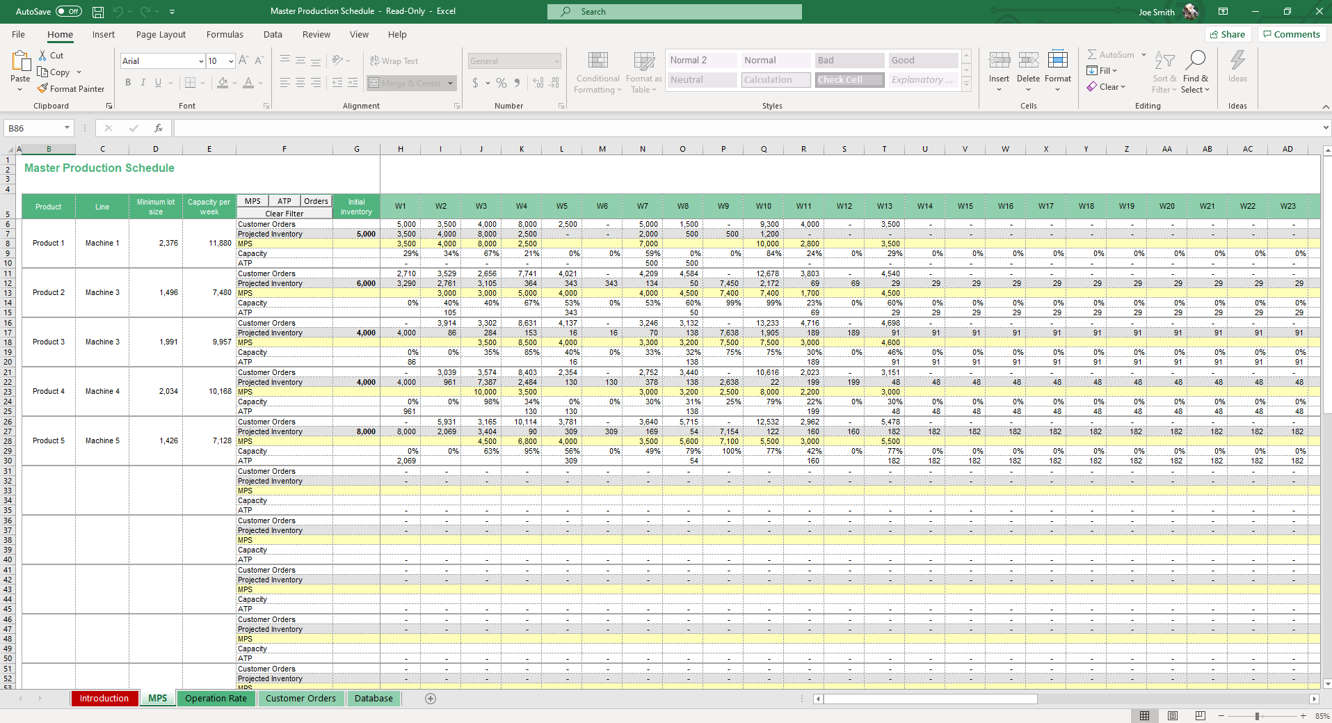 Master Production Schedule MPS Excel Template Simple Sheets