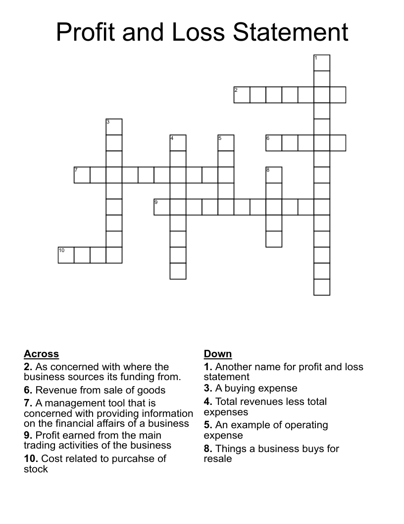 Profitable Crossword Puzzle Template