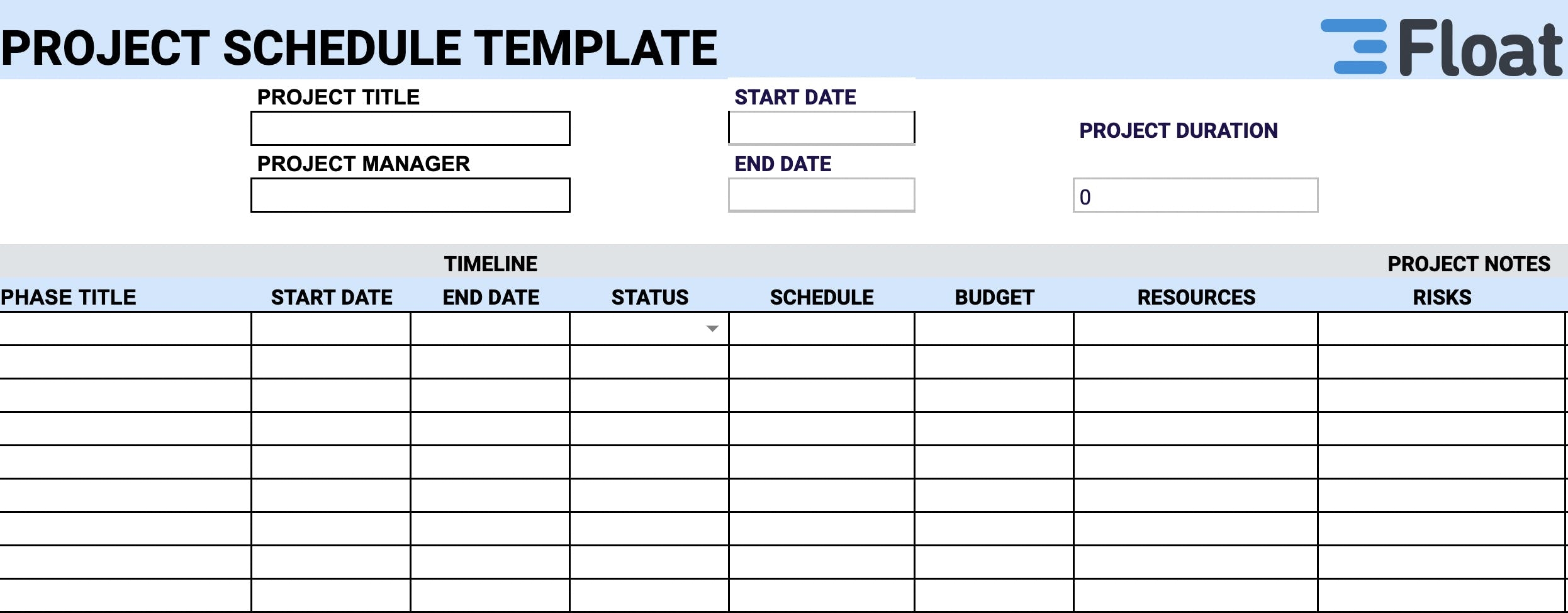 Download and Print project management planning template Listed below