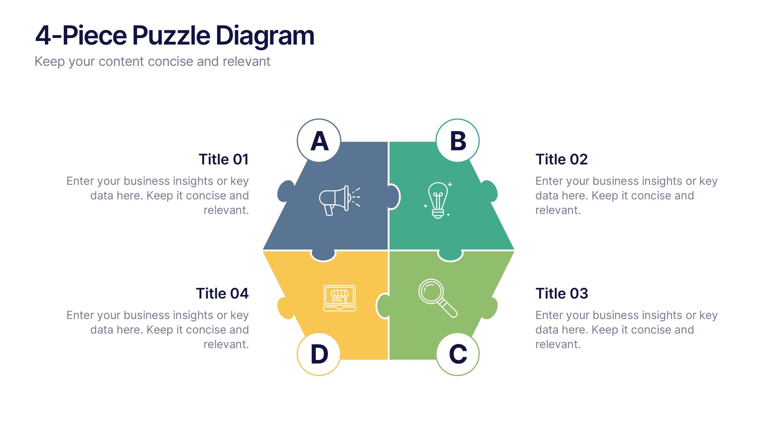 Furthermore, puzzle diagrams can be customized to suit your specific needs and preferences. You can choose from a variety of styles, colors, and layouts to create a puzzle diagram that matches the tone and theme of your presentation.