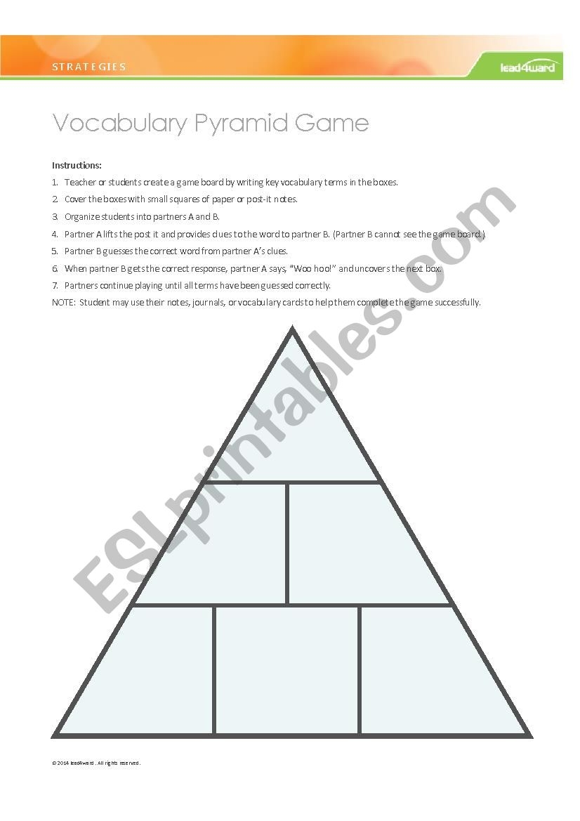 One helpful tool for tackling pyramid puzzles is a vocabulary template. This template provides a structured framework for organizing and expanding your word list, making it easier to solve the puzzle efficiently. By utilizing a vocabulary template, you can categorize words by length, starting letter, and common themes, giving you a comprehensive reference point for solving pyramid puzzles.