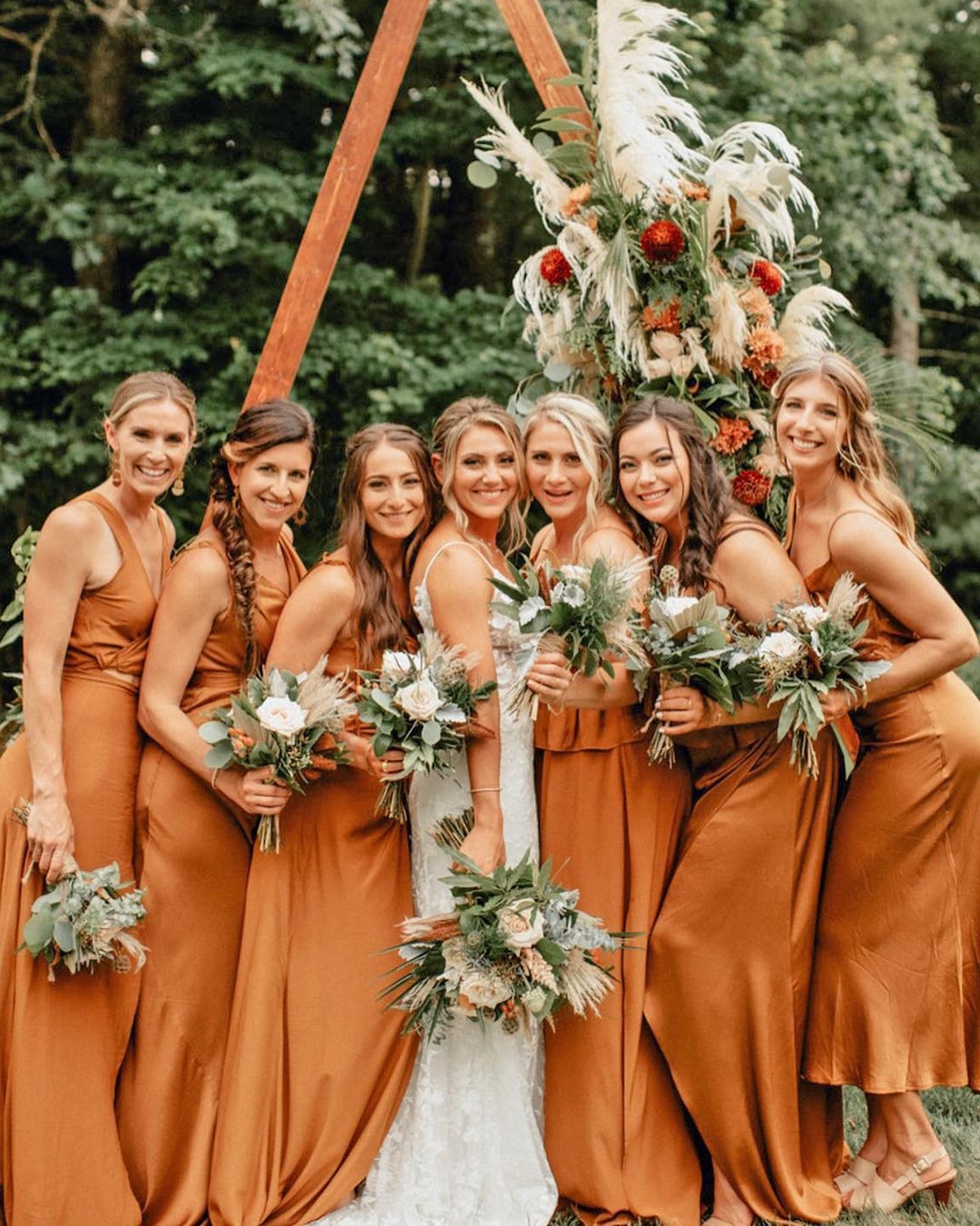 Rust colored bridesmaid dresses are a great alternative to traditional shades like navy or black. The warm undertones of rust add a unique and unexpected twist to your bridal party’s look. This color exudes a sense of warmth and coziness, making it perfect for fall or winter weddings.