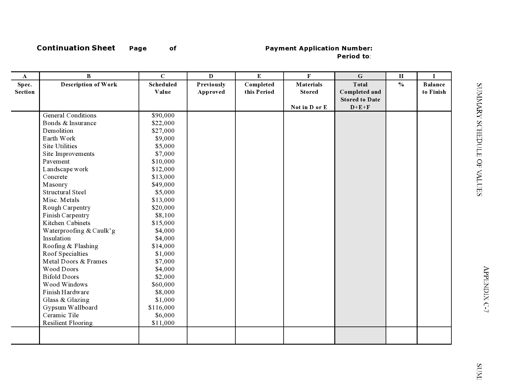 Another advantage of the AIA schedule of values template is that it can help project managers anticipate and plan for potential changes or delays in the construction process. By breaking down the total contract amount into specific line items, managers can quickly identify areas where adjustments may need to be made in response to unforeseen circumstances. This proactive approach can help minimize disruptions and keep the project moving forward smoothly.
