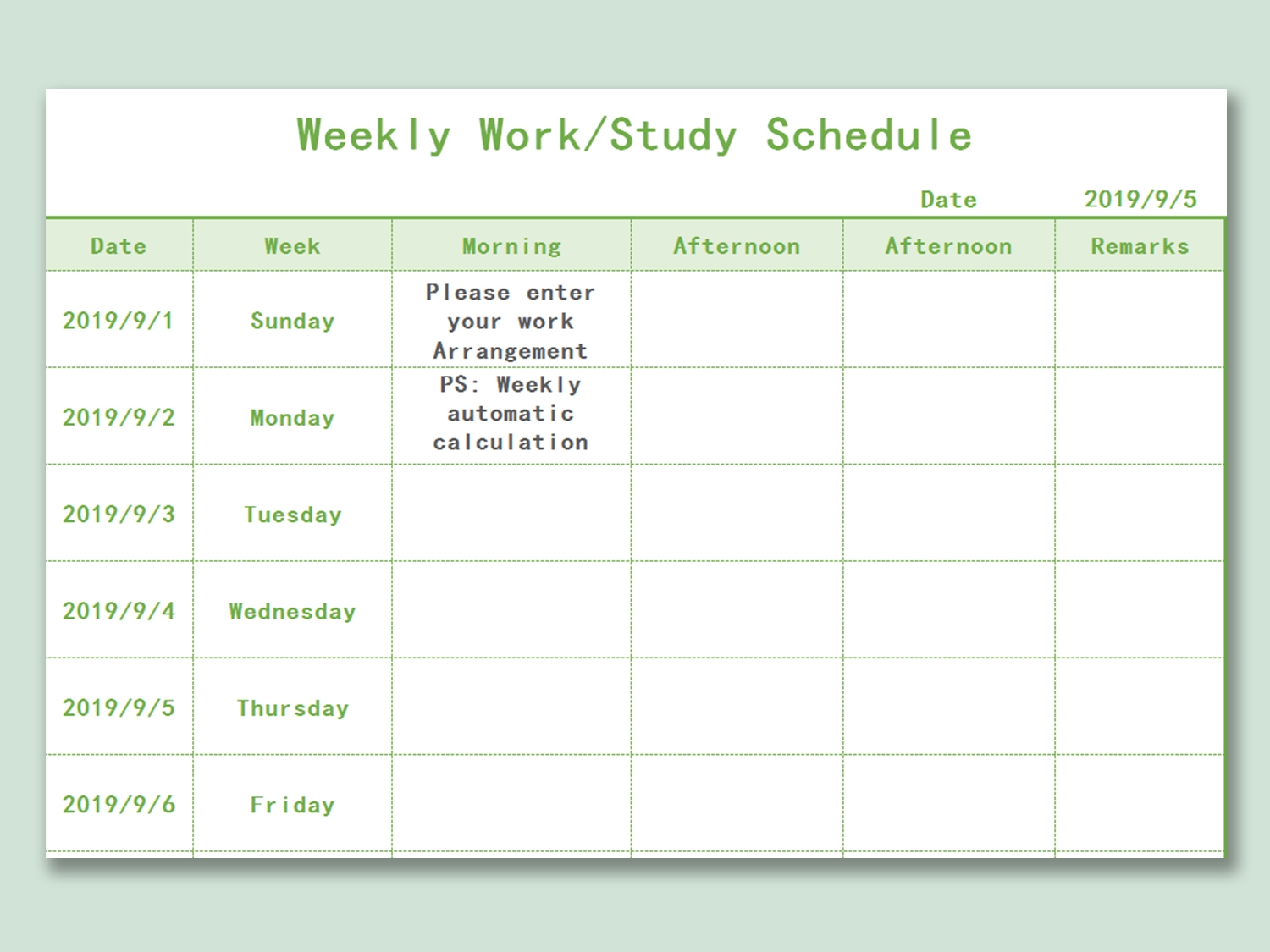 Weekly Study Schedule Template